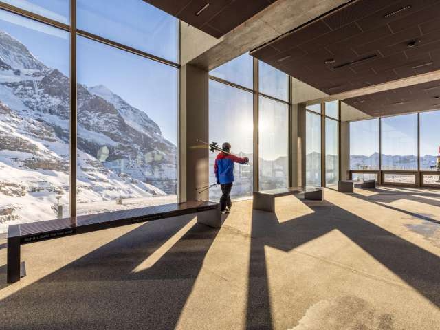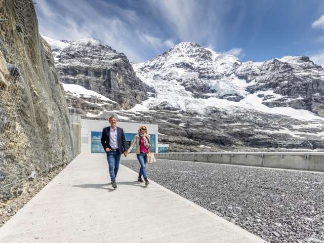 Bergstation des Eiger Express, Ausgangspunkt für die Fahrt aufs Jungfraujoch: Das ist der Eigergletscher. Er verbindet das Wander- und Skigebiet am Fuss der Eigernordwand mit der faszinierenden Welt aus Eis und Schnee des Jungfraujochs. Wer im Winter mit Ski oder Snowboard unterwegs ist, nimmt hier eine der vielen Abfahrtsrouten. Und wer im Sommer Wanderlust verspürt, hat hier die Wahl zwischen alpinen Wander- und sanft abfallenden Fusswegen. Geniesse einen Aperitif und die einzigartige Aussicht auf das Bergpanorama auf der Terrasse vom Restaurant Eigergletscher.
