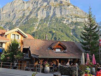 Auf traditionelle Gerichte aus Nordindien spezialisiertes zwangloses Speiselokal mit Blick auf die Alpen.