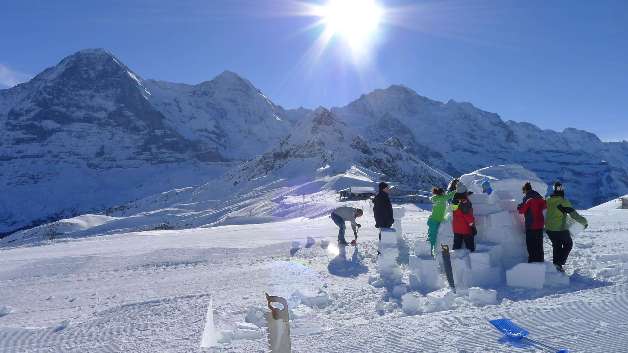 Unter fachkundiger Anweisung eurer OUTDOOR Guides baut ihr Block für Block euer eigenes Iglu. Die Baukunst der Inuit erfordert Ausdauer, Genauigkeit und Kooperation. Wir beginnen mit dem Aussägen der einzelnen Schneeblöcke aus dem von einem Pistenfahrzeug präparierten kompakten Schneefeld. Anschliessend legen wir die Schneeblöcke kreisförmig und gegen oben immer enger bis zum Abschluss der Iglukuppel aufeinander. Beim Genuss eines warmen Getränks könnt ihr euer neu erlangtes Fachwissen austauschen. Ein Apéro und/oder Abendessen rundet euer OUTDOOR-Erlebnis in der Jungfrau Region ab.