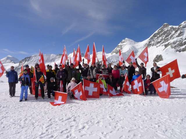 We don’t take own flag throwing event quite this seriously, however. We will pick you up at the meeting point and accompany you to our flag throwing arena, where our professional flag throwers from the Jungfrau region will show off their impressive abilities.