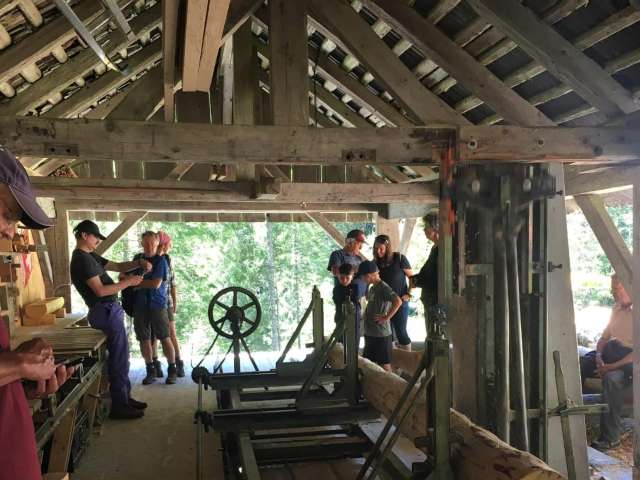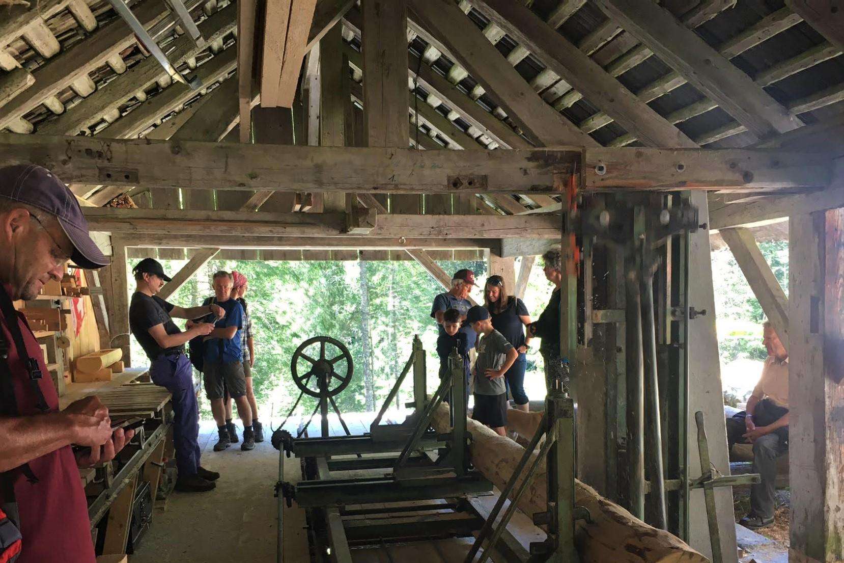 Pure water power! A visit to the Sagi is particularly recommended when accompanied by Werner Feuz, the sawing expert. He shows how the water is dammed and channelled to the sawmill, how the tremel is clamped, sawn and milled. There is no electricity in the sawmill. Only natural water power is used to cut the tree trunks so that they can be used for the carpentry work. If you visit without a guided tour, you can see the sawmill from the outside, but you will not see it in operation. The sawmill was built in 1858. It was renovated by 2017 and is still almost as operational today as it was over 150 years ago. The sawmill can only be reached on foot. The hike from Gimmelwald takes around 40 minutes.