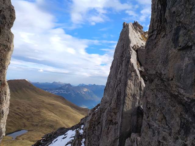 Before you abseil down to the saddle from the last spike, enjoy the magnificent view once again during a long rest at the summit.