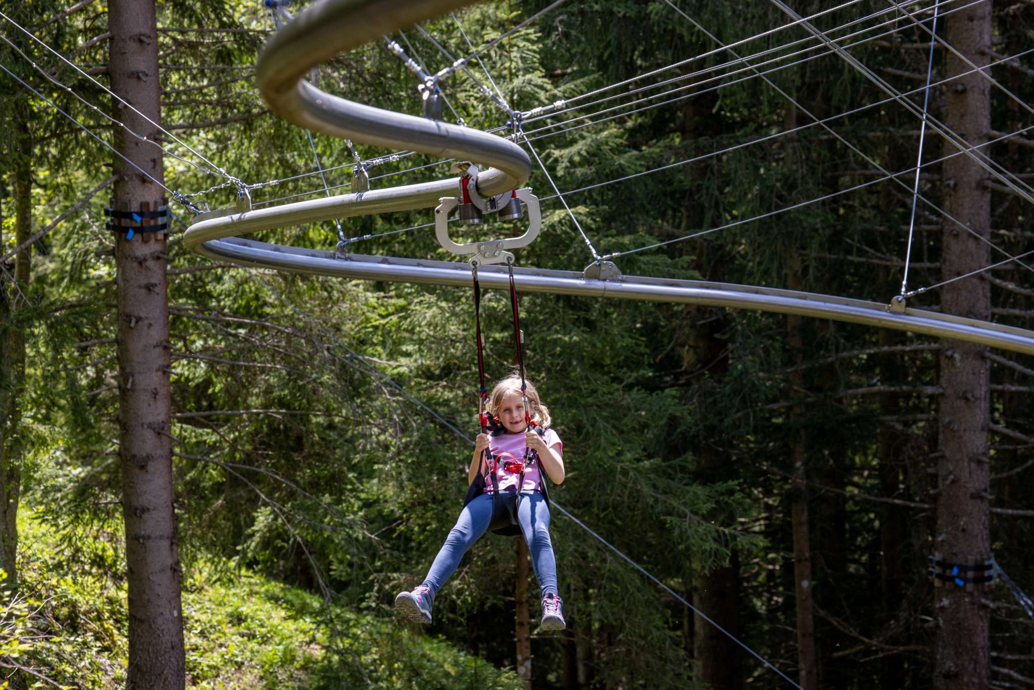 Soar through the forest like a bird on the Fly-Line on the Pfingstegg. You glide gently and silently past rock faces and watercourses. Sometimes just above the ground, then again at a height of 12 metres. The Pfingstegg Fly-Line starts directly below the mountain station of the aerial cableway and immediately disappears into the forest. At the end, a special lift takes you back up to the start. The aim is to enjoy the surroundings, immerse yourself in the world of the forest and return to the start at a slower pace.