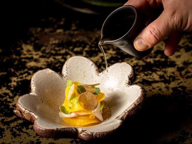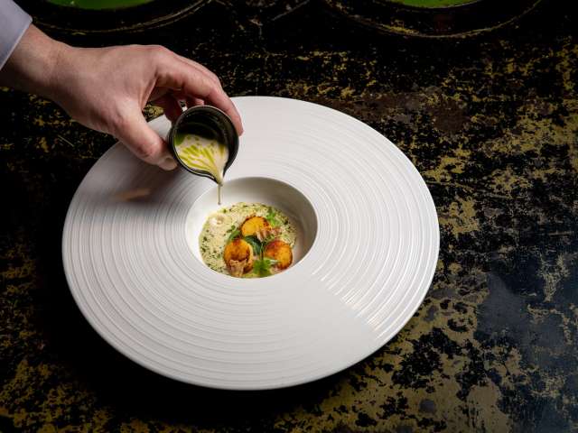 The modern culinary style of our head chef Dávid Imre Rózsa is characterised by technical sophistication and reduced yet flavourful compositions. Dávid was awarded one star by the Guide MICHELIN 2025 selection and 16 points by Gault&Millau.