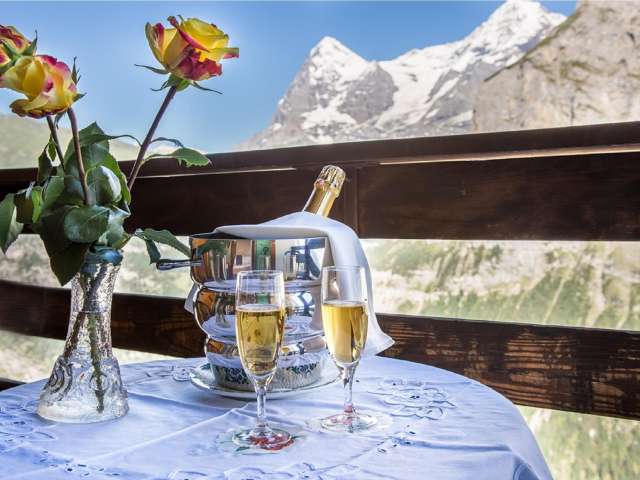 The restaurant at the Hotel Alpina has a spacious dining room where numerous national and international dishes are served. The delicacies can be savoured thanks to the large panoramic windows with a direct view of the Eiger, Mönch and Jungfrau.