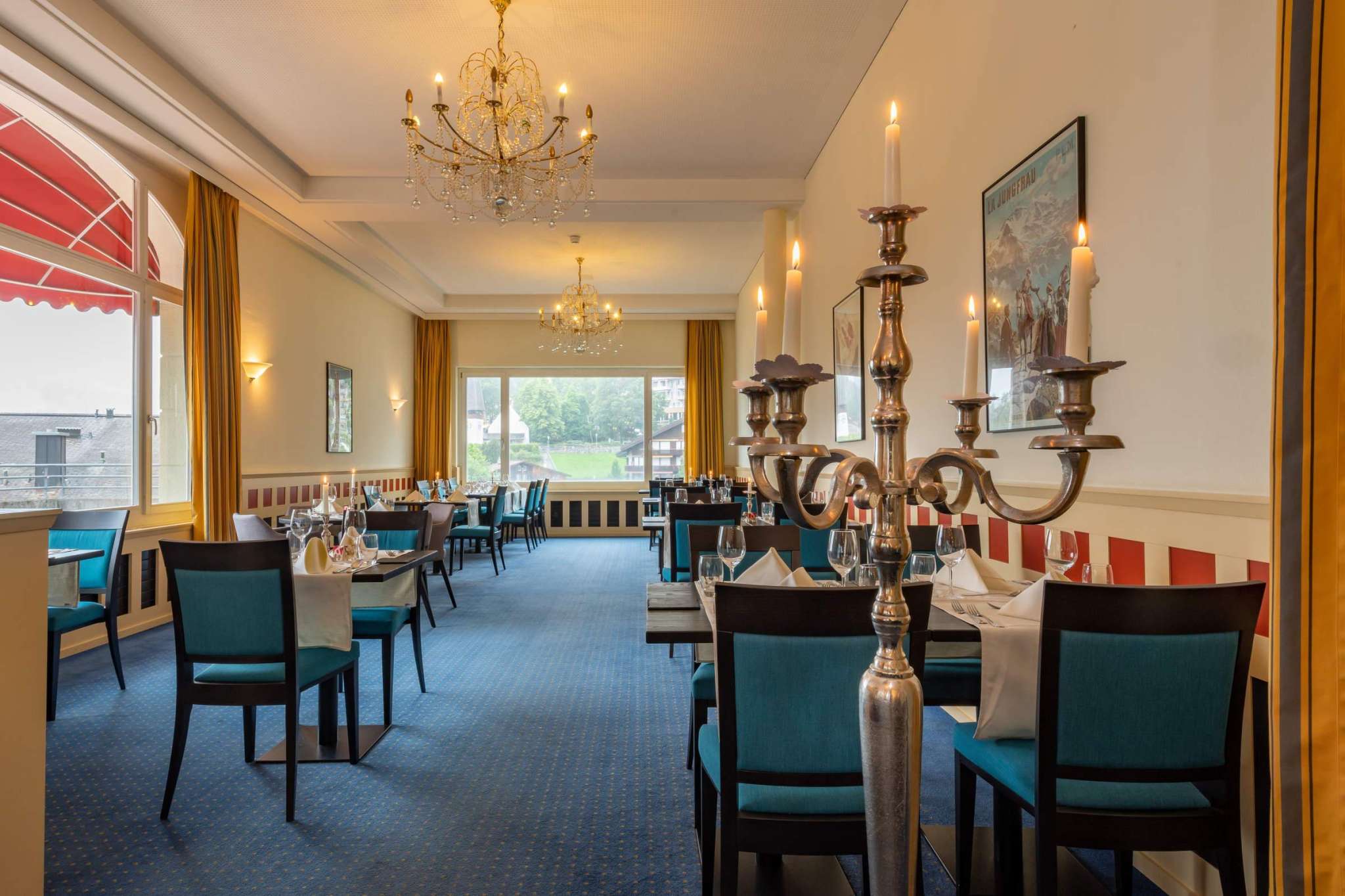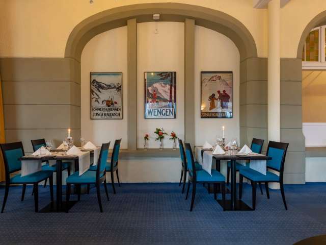 A balanced breakfast buffet awaits you in the morning in the dining room - with a view over the Lauterbrunnen Valley. In the evening, you will be served a 4-course menu of your choice (selectable on site). Dinner opens daily with a starter buffet with salad and soup. Once a week, you can also enjoy a delicious dessert buffet with homemade patisserie.