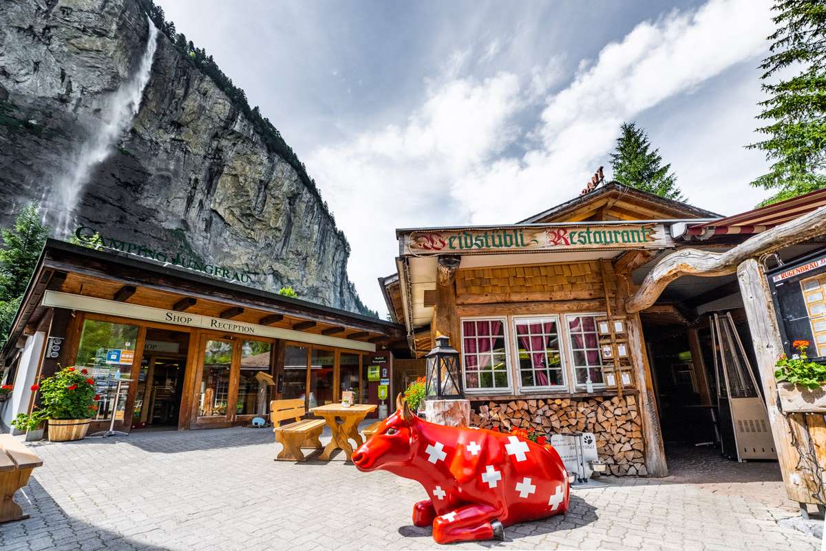 The "Weidstübli" restaurant at Camping Jungfrau was built in 1987 in typical Swiss chalet style. It offers traditional Swiss cuisine and creative modern creations under the motto Good quality at a reasonable price. The rustic and cosy dining room and the beautiful terrace invite you to enjoy and linger.