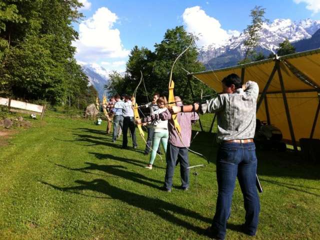 Concentration, body awareness and intuition are prerequisites for hitting the bull's eye with a bow and arrow. You learn to shoot intuitively, i.e. without a target device. Even with the blowpipe, your feeling for the trajectory of the arrow is more important than classic aiming, which comes into play when using the crossbow. In this Olympics you will complete the disciplines of bow, blowpipe and crossbow shooting.