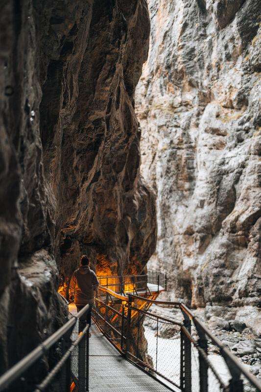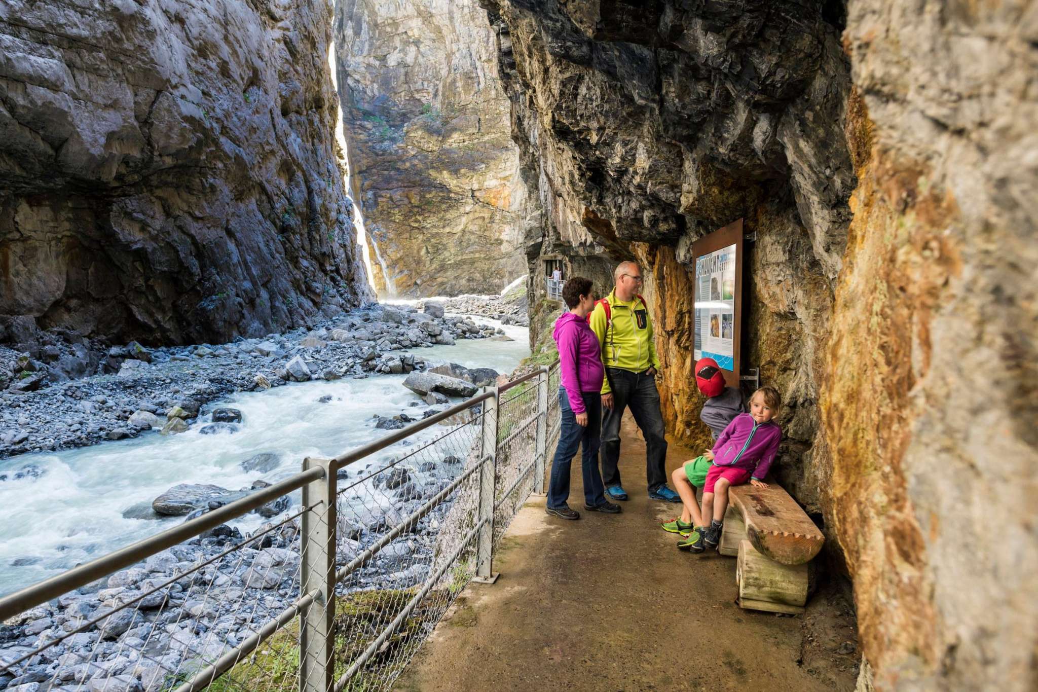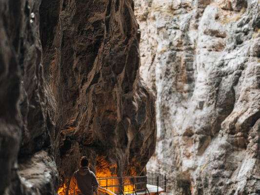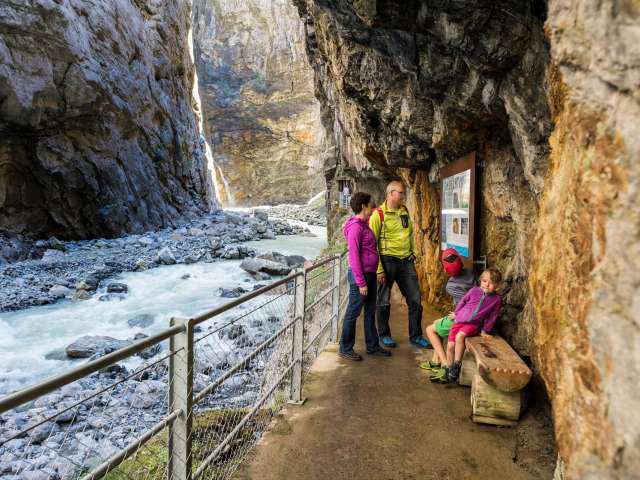 Une œuvre d'art imposante de la nature ! Les parois rocheuses de la gorge du glacier, hautes de 300 mètres, témoignent de la force incroyable du Glacier inférieur de Grindelwald. Malheureusement, ce glacier n'existe plus. La passerelle qui s'enfonce profondément dans la gorge t'offre une vue unique et authentique sur le passé. L'eau tumultueuse de la Lütschine, le vent léger constant ainsi que les conditions de lumière impressionnantes rendent cet endroit passionnant pour tous les sens. La gorge du glacier est divisée en divers thèmes comme la géologie, les glaciers, l'eau ou les mythes - une expérience passionnante pour tous les âges. Elle est facilement accessible par tous les temps. L'un des points forts est le Spiderweb de 170 m2. La toile praticable, tendue au-dessus du canyon, offre une vue unique et des sensations fortes en même temps.