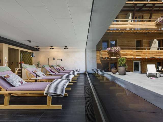 L'hôtel dispose d'une piscine intérieure, d'un espace bien-être séparé avec saunas, massages et jets de pieds après une journée à la montagne.