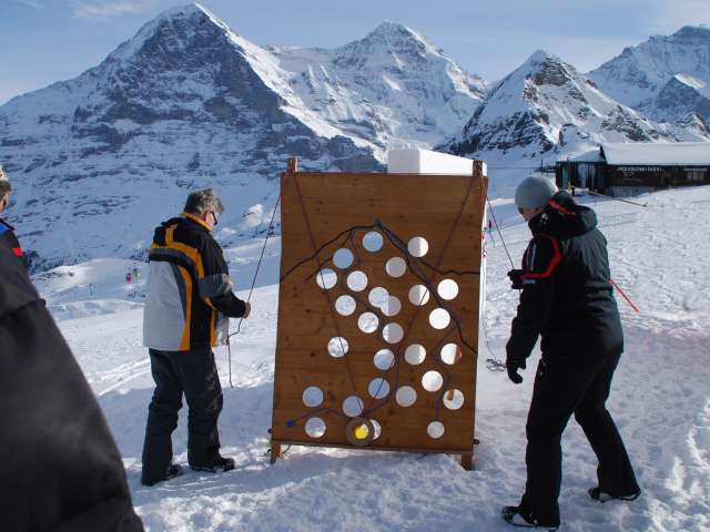 Des lieux variés dans la région de la Jungfrau se prêtent parfaitement à l'organisation des Jeux des Alpes. Répartis en équipes, tu te mesureras dans différentes disciplines stimulantes pour désigner une équipe gagnante à la fin. Que tu préfères mettre l'accent sur l'habileté des équipes participantes, sur le défi de l'exécution des compétences traditionnelles suisses ou simplement sur la chance, tu n'as que l'embarras du choix pour organiser tes jeux alpins. Nous t'aiderons volontiers à choisir tes jeux ainsi qu'à planifier l'ensemble de ton séjour dans la région de la Jungfrau. Après le jeu, nous serons ravis de te présenter les résultats lors d'un apéritif ou d'un repas, au cours duquel les performances spéciales et les pannes survenues pendant les jeux seront mentionnées avec humour. Notre sélection actuelle de jeux comprend les disciplines suivantes et peut être élargie à tout moment: