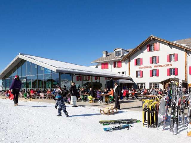 Le point de rencontre dans la belle région de ski et de randonnée de Männlichen - Kleine Scheidegg. Le panorama unique des montagnes est au menu de la terrasse ensoleillée mais aussi du restaurant. Offre-toi une pause et rêve à 2225 mètres d'altitude - au Berghaus Männlichen, il est possible de passer la nuit dans une chambre individuelle, double ou à plusieurs lits.