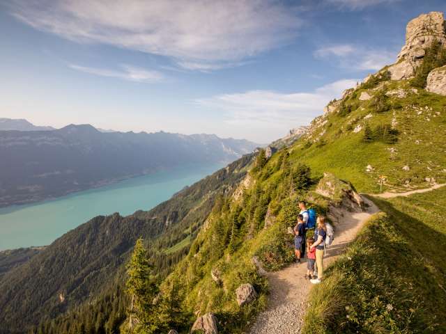 En chemin, la diversité de la nature impressionne : les forêts, les alpages et la vue grandiose sur les célèbres paysages de l'Oberland bernois avec les lacs de Thoune et de Brienz.