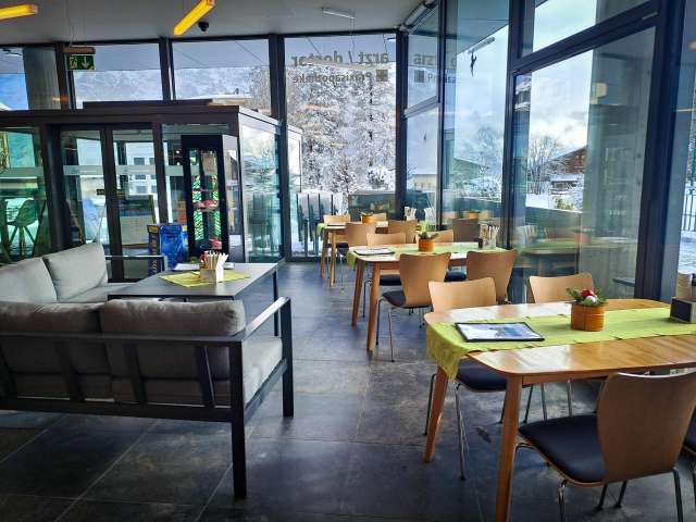 Le lieu de rencontre pour tous L'environnement agréable, l'offre culinaire et le service amical font de chaque séjour une petite mais bonne expérience. En plus des petits snacks de midi, des gâteaux faits maison sont servis et l'après-midi, de délicieux apéro-plats. Nous organisons volontiers des repas pour les groupes en combinaison avec des activités au centre sportif.